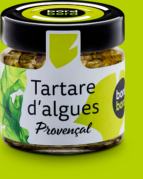 Algues 30 % (spaghetti de mer, dulse, laitue de mer* et wakamé, origine Bretagne ou *Portugal), huiles vierges (olive et colza), cornichon et câpre au vinaigre, oignon, échalote, basilic, origan, ail, romarin, thym.